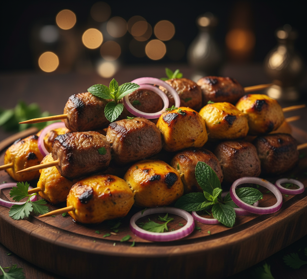 A signature assortment of expertly grilled lamb and chicken kebabs, marinated in traditional spices and flame-grilled to perfection. Served with fresh accompaniments, this platter reflects our commitment to bold flavors, quality ingredients, and professional catering standards.